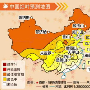 墨迹天气APP【枫叶预报】提示,霜降前后正是枫叶观赏的最佳时期。