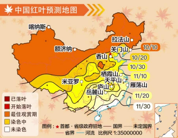 霜降至,枫叶红,墨迹天气提醒莫要错过赏秋好时节