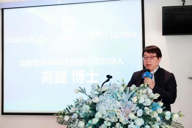 成都蓉矽半导体有限公司创始人高巍博士作为客户代表,则从另一个视角介绍了实验室。作为研究院特聘专家,高巍博士曾参与研究院的方案制定,更作为客户代表完整体验过可靠性测试及失效分析服务。