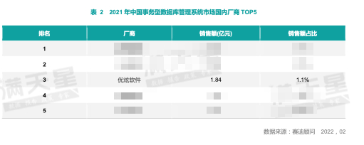 赛迪报告:优炫数据库在事务型和分析型数据库领域均排名第三