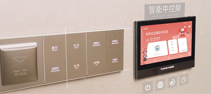 尚美数智正面向旗下全品牌进行数智化升级,尚客优品酒店作为集团旗下中端酒店品牌,在智慧化运营和数字化能力上与集团一脉相承。该样板间拥有三大产品特色: