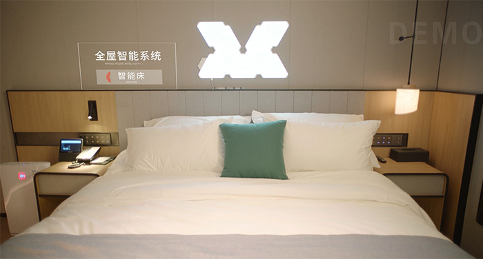 智能酒店内置多种客房主题模式:睡眠模式、阅读模式、休闲模式 ,满足用户多样化需求。同时,在传统智能客控(语音控制灯光、窗帘、空调、电视)基础上 ,尚美数智还扩展了智能睡眠系统及智能卫浴系统,采用新时代床垫领域的黑科技产品——智能电动床,实现对人体曲线的自适应调节和精准承托;同时依托双传感技术,根据住客需要自行随意调节所需淋浴模式、温度,并保持水温,实现卫浴系统和床品的同步“进化”。