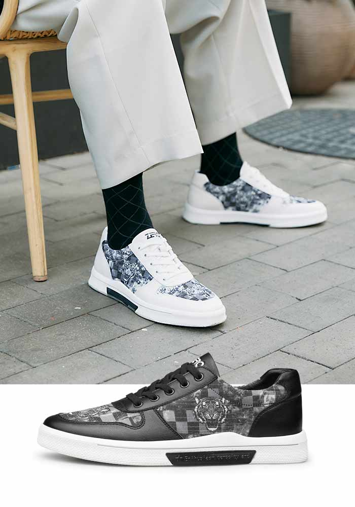 零度在皮质鞋面上纵横布满格子线,虎头跃然其上,彰显着大开大合的霸气中国潮,百搭的配色驾驭时尚,进退之间游刃有余。