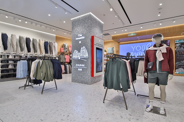作为珠海规模最大、功能最完善的大型购物中心之一,华发商都是当地购物观光、休闲娱乐的胜地。lululemon珠海首店位于华发商都一层,门店外立面的设计以lululemon创新面料为灵感,营造出波浪起伏的视觉效果,与落地玻璃橱窗内高低错落的木格栅相呼应,尽显活力与动感。店内设计沿续全球统一零售门店的形象,将水磨石和橡木作为主要元素,打造清新自然的购物体验。店内的“THE SWEATLIFE” 灯光艺术装置用极简线条勾勒了中国第一座大型海边雕像渔女雕像和标志性的珠海大剧院“日月贝”,诠释了这个海滨“百岛之市”独有的人文情怀。