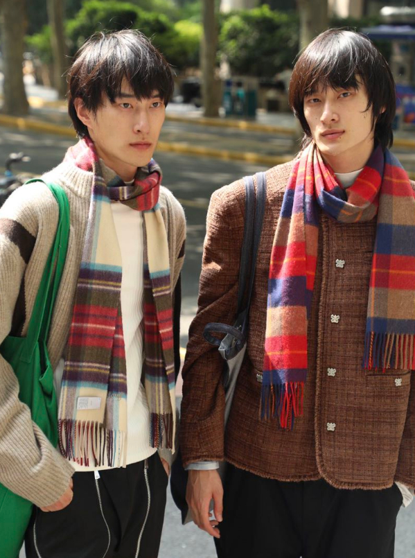 春夏2023上海时装周期间,我们注意到街拍中频繁出现的格纹羊绒围巾;在晴雨交替的换季之时,它成为了模特在秀场之下的心头好。