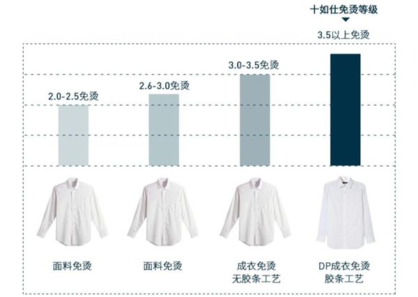 十如仕自主研发纯棉DP3.5免烫技术,让衣物纯棉不刺激皮肤,保持高档衬衫品质感的同时,具有远超国标3.5级别免烫效果。衣服水洗后悬挂晾干,即可达到类似专业人士全方位熨烫效果。不仅面料平整,行业公认的易皱接缝处也平整如初。舒适体验和方便打理,是十如仕让职场人士爱不释手的另一个魅力。