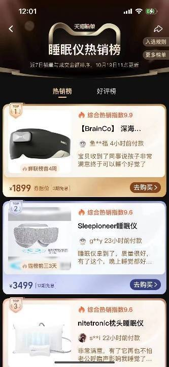 科学安全有效的产品总会得到用户的认可。在电商平台上,这款安睡仪也是接连得到用户好评。据搜索,在某平台上深海豚脑机智能安睡仪已经蝉联“睡眠仪热销榜”榜首4周。强大的功能和平易近人的价格让越来越多的用户选择了让深海豚脑机智能安睡仪成为自己的睡眠管家,为自己养成良好睡眠习惯、提升睡眠质量。