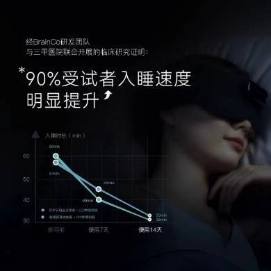 经过三四年的研究,BrainCo强脑科技研发出一款将脑电数据检测+声光电干预一体化的“深海豚脑机智能安睡仪”,利用精准脑电(EEG)检测技术,结合人工智能算法,解译大脑在不同睡眠阶段的神经信号状态。内置的双声节拍及多种助眠音波(白噪、粉噪),能使用户进入比较平静放松的状态,快速产生睡意,并可以增加深睡眠比例,提高睡眠质量。经研发团队与三甲医院合作开展的临床研究中证明,90%的受试者使用这款产品后入睡速度有明显提升。