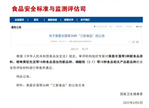 2019年2月,莱茵衣藻被美国食品和药物管理局(FDA)认定为“公认安全”(GRAS)状态。2022年5月,莱茵衣藻获得中国国家卫健委正式批准,可作为新食品原料,安全可靠并可不限量食用。