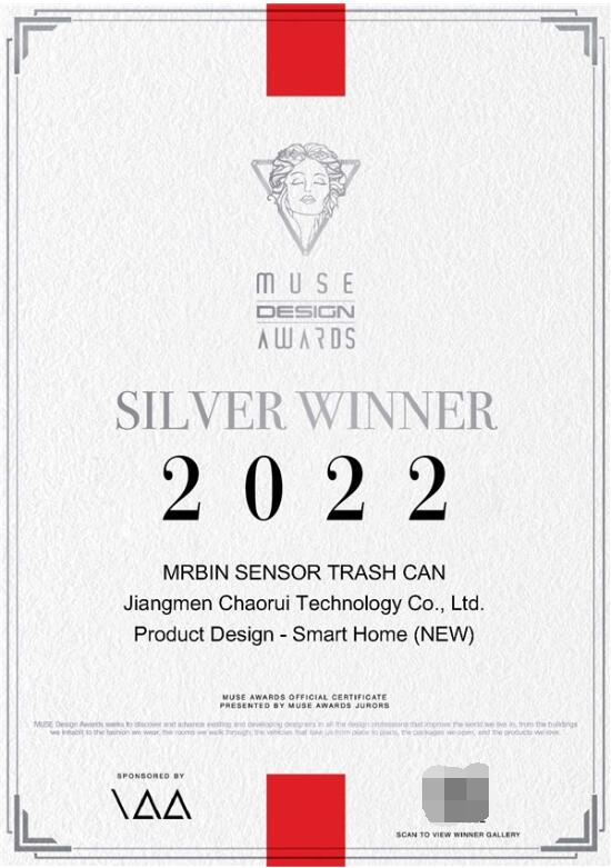 当然有人会问,为什么麦桶桶的设计新品可以在缪斯设计奖里脱颖而出呢?麦桶桶智能感应垃圾桶是通过了CE、ROSH、CCC、CQC,安全认证,安全可靠,材料均使用环保材料,安全无异味,对比行业内的旧料废料再造胶,更关注用户室内环境的健康。而智能功能有感应开盖,自动定盖,手动开盖,IPX3防水功能,脚踢开盖,麦桶桶垃圾桶的极限静音功能一直是行业领先,静音开盖功能技术也是杠杠的,简简单单、轻而易举就能把垃圾丢进垃圾桶,而且电量长时间续航,让你不用经常充电,而垃圾桶的高度则是采用亚洲人小腿高度为测试样本,满足屈膝开盖,免手操作人机工学设计,让你不用弯腰屈膝把垃圾丢进桶里,更让人们在日常生活中获得更加舒适暖心的生活。