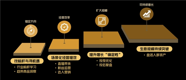 基于服饰商家的成长规律,崔诚将巨量云图极速版的使用方法拆解为“四步走”:锚定方向——经营提效——扩大规模——可持续增长。商家可以借助平台数据,与消费市场、潮流趋势保持俱进,在此基础上不断提升投放和运营效率,带动生意长线增长。