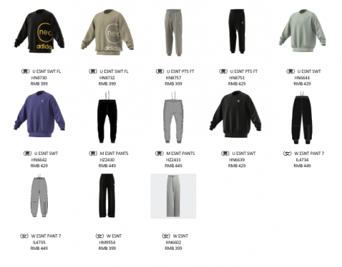中:adidas neo X JUJUTSU KAISEN女款双面针织长裤,adidas neo X JUJUTSU KAISEN男款锥形长裤;
