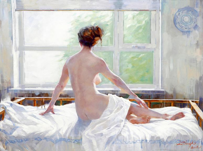 李小争油画《窗前女人》(150×200cm)