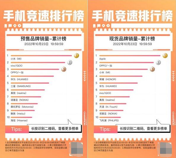 目前,京东11.11预售活动正在火热进行中,各手机品牌也纷纷开启了降价优惠,希望能吸引消费者前来选购。想必大家都很好奇目前各品牌之间的战况,一起来看看京东手机11.11的竞速榜吧。