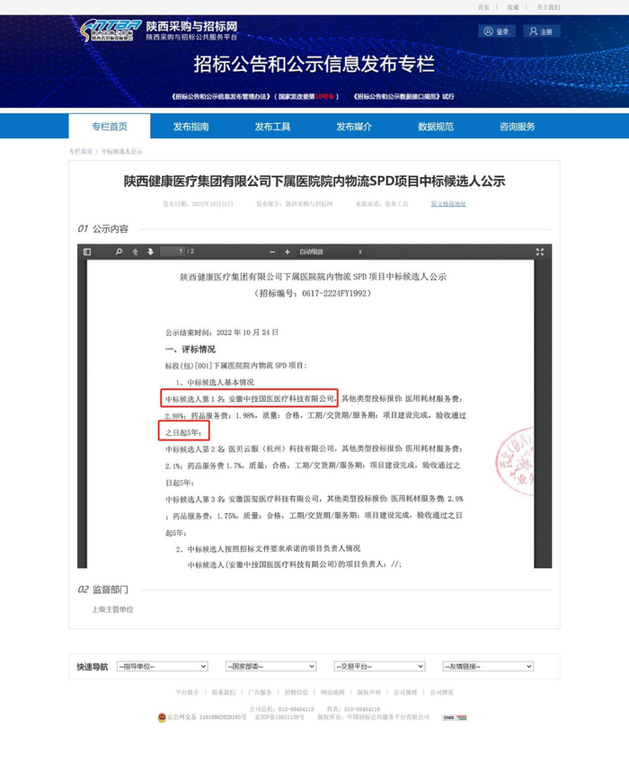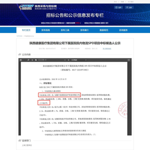 10月21日,由陕西健康医疗集团有限公司公开招标的“医院院内物流SPD项目”,经过几家实力雄厚的公司激烈竞标,我司以第一名的成绩成功中得该项目,服务周期5年。