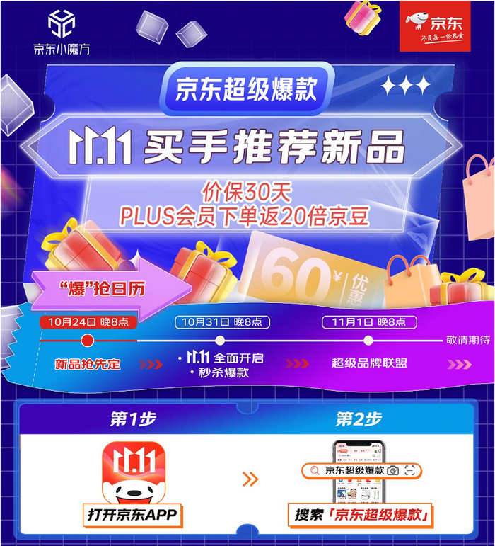 为了让每一位“追新者”享受到最爆的超级新品,京东小魔方11.11期间邀请京东采销这样的专业追新买手,通过洞察“新科技、新功能、新功效、新美味、新潮流、新家装”趋势,带来了覆盖家电、电脑数码、通讯、美妆、个护、食品、玩具、时尚、营养保健等多个品类。同时,还推出价保30天,至高24期免息的实在优惠。值得一提的是,10月24日晚8点-10月25日晚8点,京东小魔方全场新品PLUS会员还可返20倍京豆。