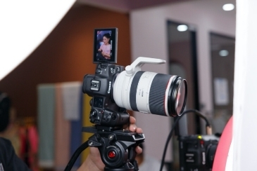 “可姐除了日常的直播,经常还有外地的工作,但我们的直播不能停。有时技术人员走不开,就会安排运营部门的同事跟着可姐去外地直播。EOS R5这套组合体积小巧,非常适合外出携带,我们经常是带着2台R5,2支RF镜头,1个小型切换台就出发了,而且EOS R5的设置、操作也比较简单,非专业的技术人员也能操作自如,获得理想的直播效果” 吴天罡介绍。