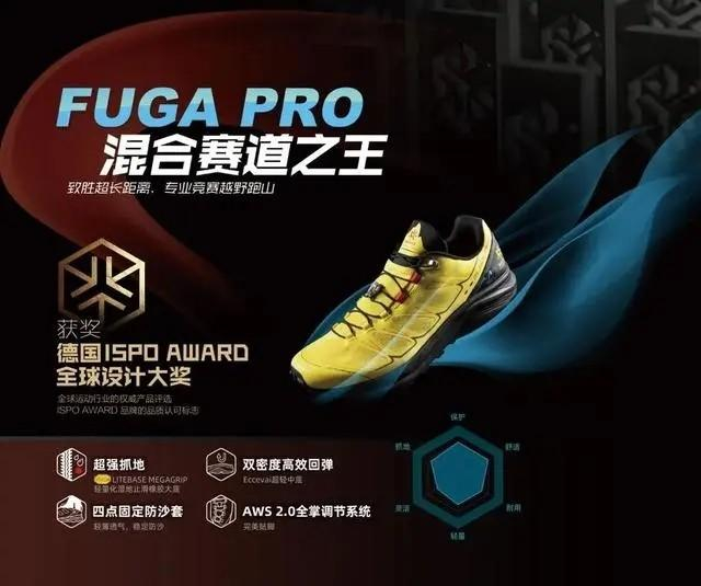 如今,KAILAS FUGA 系列跃居“世界4大越野跑鞋之一”,其迭代产品FUGA PRO更拿下针对全球运动产品领域的顶尖奖项——德国ISPO AWARD全球设计大奖,其突出的产品技术、设计和功能性,倍受国际嘉奖。