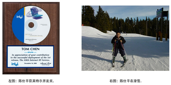 “流在心里的血,澎湃着中华的声音,就算身在他乡也改变不了,我的中国心……”曾几何时,一首《我的中国心》响彻祖国的大江南北,成为全世界爱国华人无论何时听见都能够感到荡气回肠的精神寄托。在异国他乡,陈仕平遇见了很多对自己有帮助的人,比如刚到美国时因为没有太多积蓄,意大利裔Tramontano教授就慷慨地让陈仕平免费住在他家的车库内,帮助陈仕平渡过了一段艰难的时期。2002-2005年期间陈仕平在Oregon州州政府上班,结识的几位同事John Reinhold还教会了他滑雪,他们周末经常在一起到Mt Hood山滑雪。开发团队的技术组长Pete Hale多年来一直很关心陈仕平。