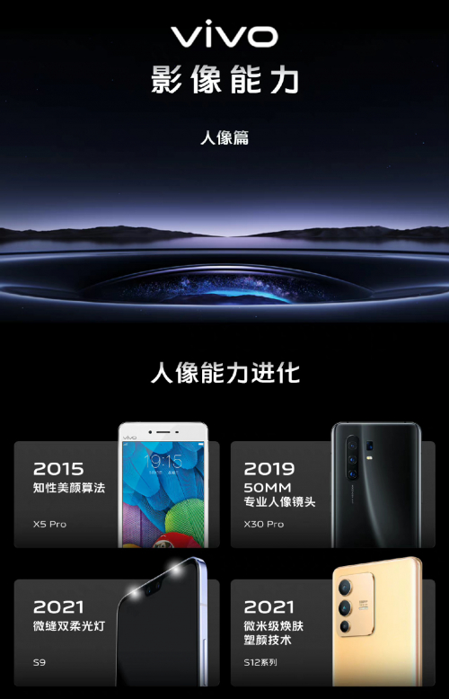 从X30开始,vivo X系列开始配备50mm黄金焦段双目人像镜头模组,同时期的华为P系列也将后置人像作为了主打卖点。之后凭借微云台、蔡司合作以及vivo自研算法的加持与升级,vivo在人像摄影赛道上逐渐成为了行业独树一帜的存在。