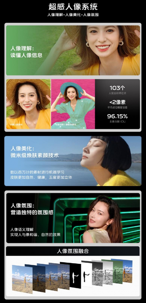 审美在线的基础上,vivo以不同年龄、性别、场景的数以百万计的素材,经过反复的机器学习,推出了全新升级的‘微米级焕肤塑颜技术’。使皮肤观感更加自然、健康,也更好地保留了五官体感,迎合“后美颜时代”的大众需求。