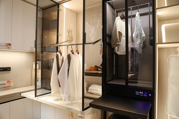 比如,用户满意度最高的嵌入式家政模块,是双方合力打造的高量级、差异化单品,实现客厅活动空间的扩大升级。当需要临时工作或者做家务的时候,顶部的灯光会调节到一个合适的参数,桌子可以抽拉出来作为工作台面使用,让储物空间腾出几倍,实现品质生活的升级。