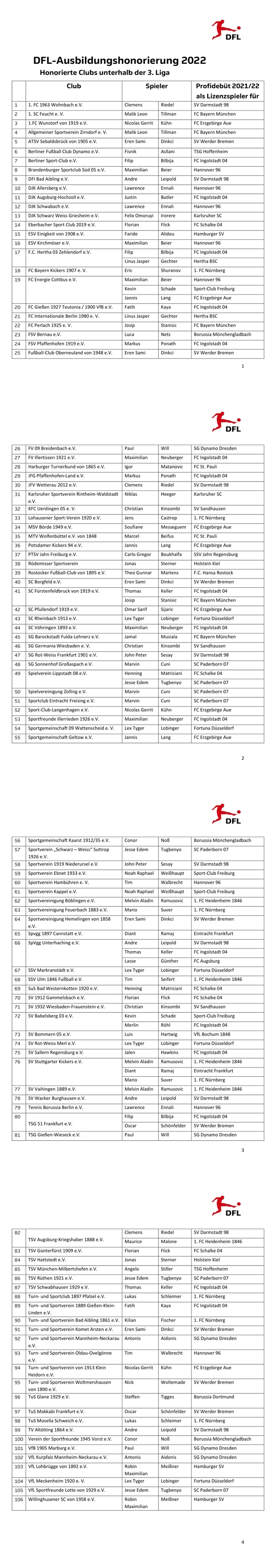 今年, 德国足球职业联盟再度奖励那些向德甲与德乙联赛培养并输送职业球员的第三级别以下业余俱乐部,150万欧元的总资助奖金池将分给106支业余球队。在过去的2021-22赛季,他们输送的青训球员中,已有60人在德甲与德乙完成了职业联赛首秀。