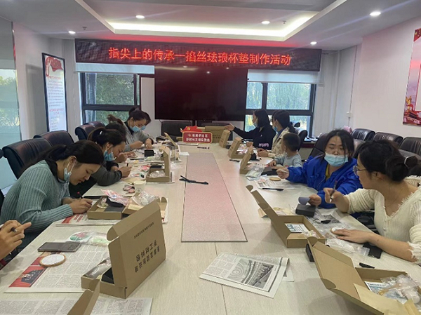 为了让更多青年居民通过了解传统文化,弘扬和传承中国传统工艺,感受大器之美。10月19日下午,陈家桥社区新时代文明实践站特开展“指尖上的传承•掐丝珐琅杯垫”非遗主题活动,共同制作掐丝珐琅工艺画系列杯垫,让体验者感受掐丝珐琅独特的民族艺术风格和深刻的文化内涵,一起迎接秋天的第一个杯垫。