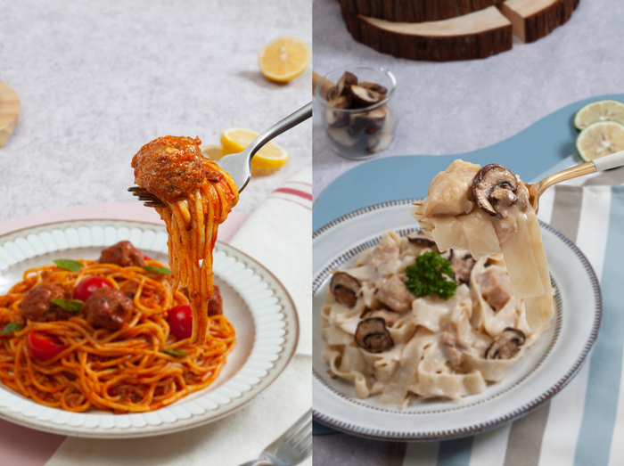 圃美多“新意餐3.0”意面产品的核心,是让消费者在家就能便捷还原传统意面风味,是在忙碌的日常生活下,保有仪式感的新时代健康速食意面产品。本届展会首发的番茄牛肉丸意面和奶油蘑菇鸡肉意面,酱、面均采用独立包装,同时省略了煮面步骤。酱料皆是餐厅级预制的番茄牛肉丸和奶油蘑菇酱,不仅包含液体酱料,而且除了肉碎、蔬菜块,还加入了大块的肉丸、鸡胸肉,真正做到真材实料。并且还配有必不可少的橄榄油包、欧芹碎等搭配小料包。料理方式也十分简单,意面可以直接和酱汁一起加热,只需两分钟即可在家尽享餐厅级美味。此外,黑椒牛柳意面也将在新品发布会后陆续上市。