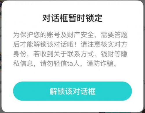 Soul用户需通过安全问答解锁对话框,遇到添加其他平台账号信息时会提醒