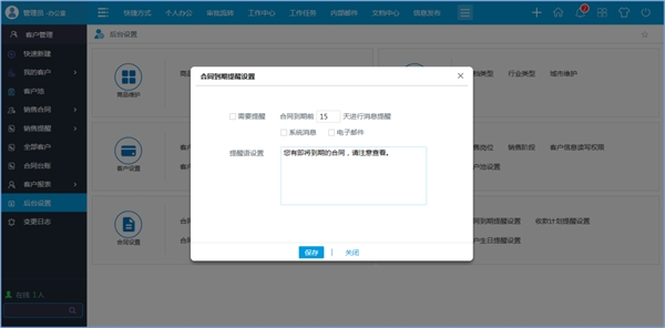 和客户保持必要的粘合度很重要,特别是关键节点不能错过,用好了事半功倍。华天OA的客户管理系统中提供合同到期前、收款计划到期前以及客户生日的提醒功能,还提供了自定义功能,销售可以根据自己的想法或实际需要记录客户信息,比如客户的喜好,客户对产品的满意度等等。让客户的信息更加灵活、完善。这样提前为忙碌的销售人员提供系统提醒,让其有时间做沟通和准备工作,是销售人员的贴心小助手。