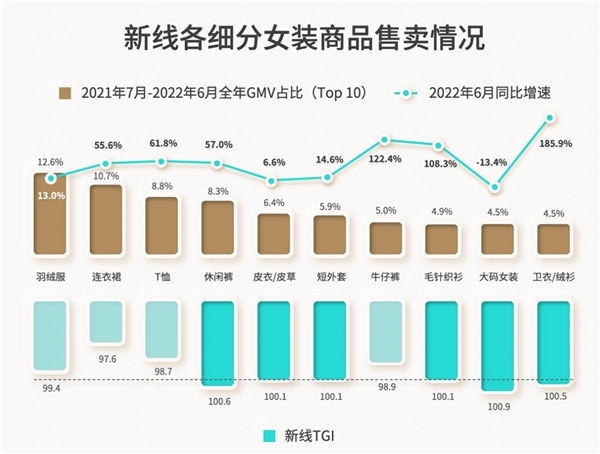 其中,服饰鞋靴作为快手电商的强势品类,目前处于持续爆发阶段。占比高达88.5%的女性消费者仍是未来该品类的新线消费主力,而且明星代言的方式对新线消费者更具影响力。秋冬季则是女装消费的高峰期,在羽绒服、连衣裙仍为消费主体的同时,卫衣等休闲运动服饰或成为拉动女装增长的主力军,其在今年6月的GMV同比增速接近186%。
