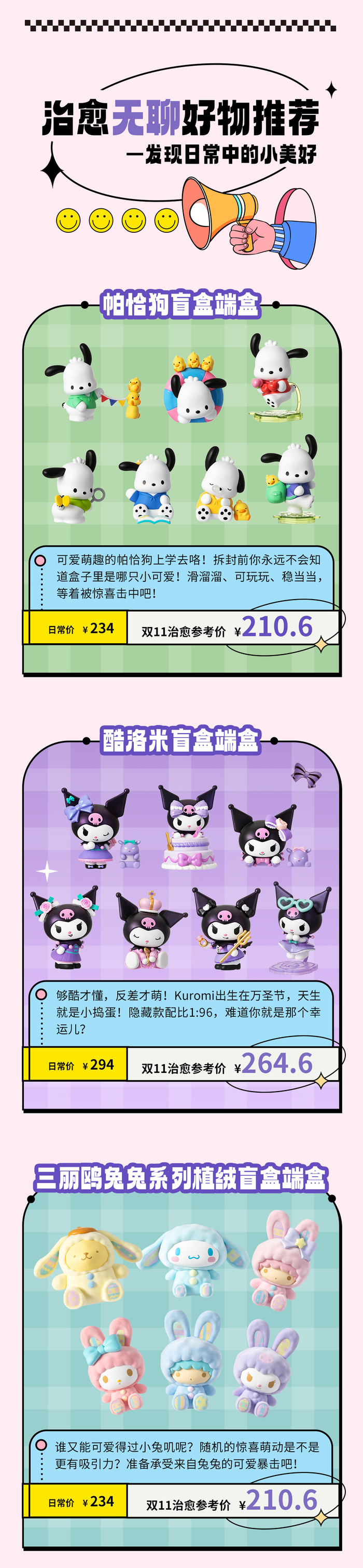 而大只的Kuromi更是可以给人软萌陪伴,聚酯纤维饱满填充手感软乎乎,再加上蝴蝶结配饰和俏皮小表情,拽拽惹人爱。这些好物都可以成为快节奏生活中的一束火光,让年轻人汲取治愈的力量来调试自己的心理状态。