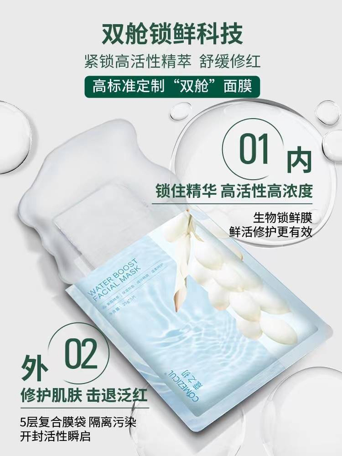 其次,蔻之初色修水光膜通过4重高浓玻尿酸的黄金复配,组成智能捕水系统,4重玻尿酸通过调整配压比,达到膜液的渗透压与泪液的渗透压基本一致。从而实现层层捕水更锁水,敷膜超时也不水合。不仅能够进入表皮层保水锁水,还能深入角质层吸水补水,到达肌底层和真皮层实现活水运输、储水新生。