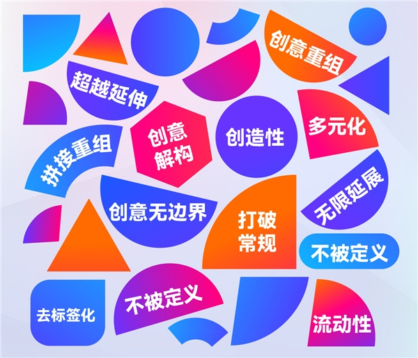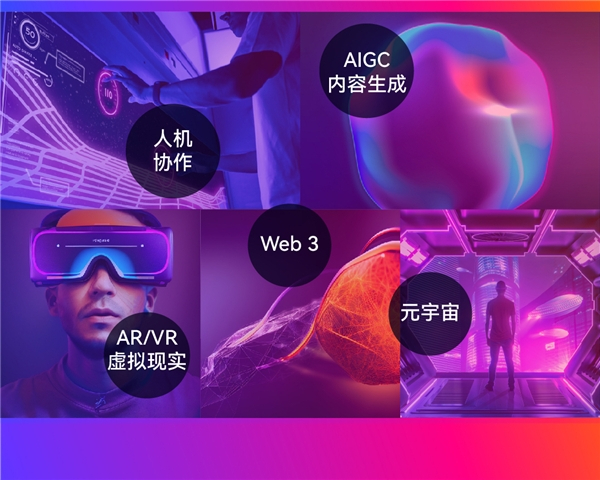 融入代表「人机协作」、「AIGC内容生成」、「Web3」、「元宇宙」等未来技术趋势颜色。