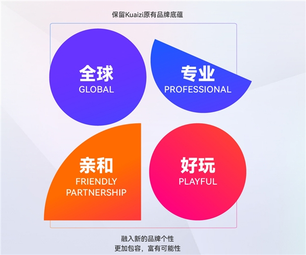 随着用户群体的扩大,且呈现年轻化趋势,Kuaizi保留了「全球」「专业」的品牌底蕴,并融入「亲和」「好玩」的品牌个性,Kuaizi希望拉近与多元化年轻用户们的距离,共同探索飞速发展的内容商业生态。