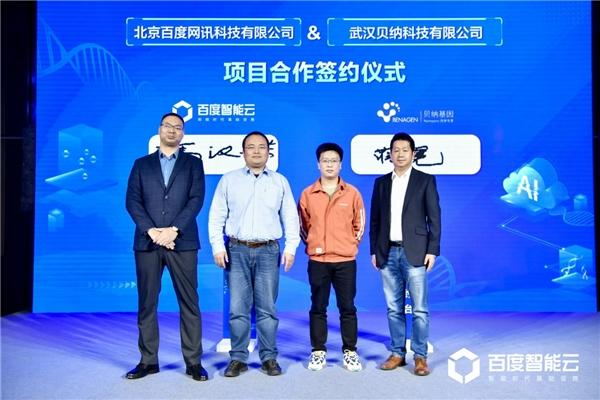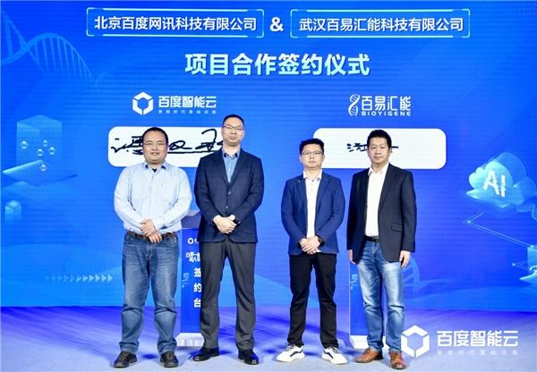 会上,百度智能云正式与万摩科技、康测科技、贝纳基因、百易汇能、百奥维凡分别签署项目合作协议。基于“云智一体”架构,百度智能云将为上述企业提供数字化基础设施建设、智能化模型开发支持等服务,助力基因测序过程提质增效。
