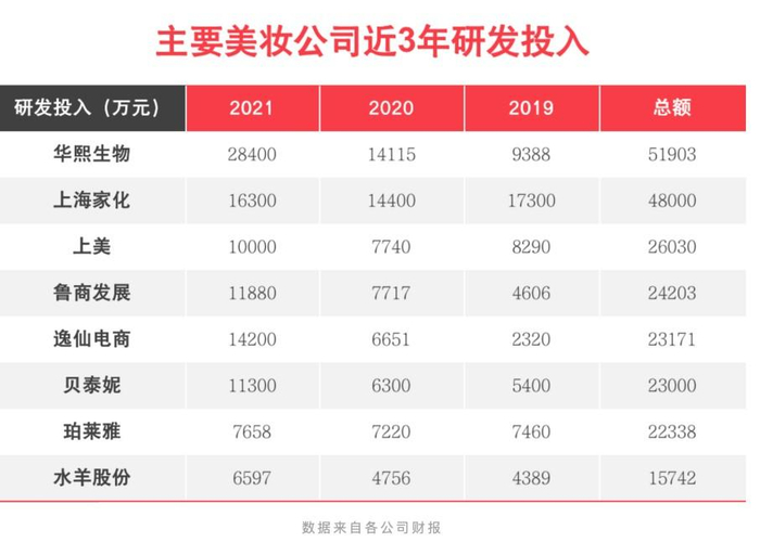当然,受限于发展历史与市场体量,本土化妆品绝对值上仍有较大追赶空间,不过,近年来在科研旗帜之下,本土企业基本实现了与自身规模、市场地位、发展节奏匹配的研发投入,并逐渐比肩国际水平。
