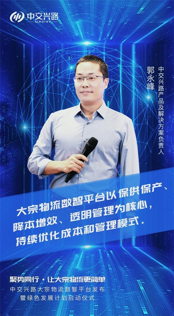 中交兴路产品及解决方案负责人郭永峰详解“大宗物流数智平台”。