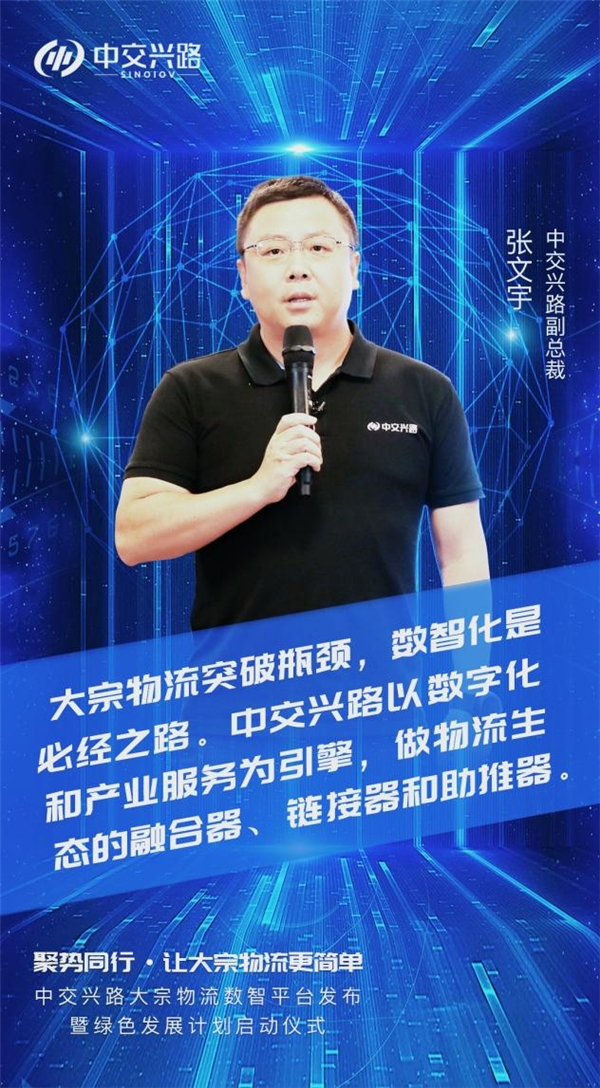 中交兴路副总裁张文宇以《聚势同行 让大宗物流更简单》为题分享物流数字化深度思考。