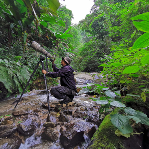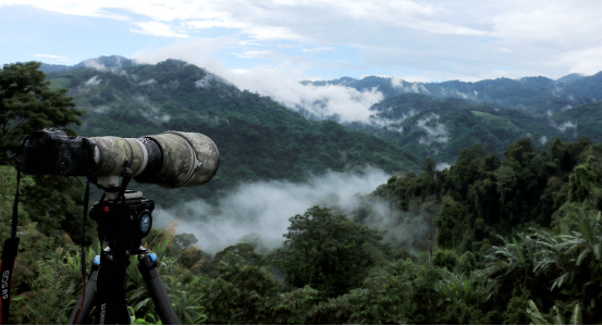 盈江位于云南横断山脉西南端、高黎贡山南延,傣语称“勐辣”,这里的地势从海拔从210米的河谷一直到3404.6米的高山,巨大的海拔落差再加上南亚热带季风,造就了盈江独特的山地雨林风貌,也成为各种野生动物繁衍生息的天堂,仅盈江县就有兽类86种、鸟类356种,更是国内少数能拍摄到犀鸟等热带鸟类的地方之一。这片山地雨林是我常年拍摄的地方,但这次我使用了新的R5全能组合EOS R5+RF100-500m F4.5-7.1 L IS USM,以及EOS R5配合EF 800mm f/5.6L IS USM大炮拍摄。