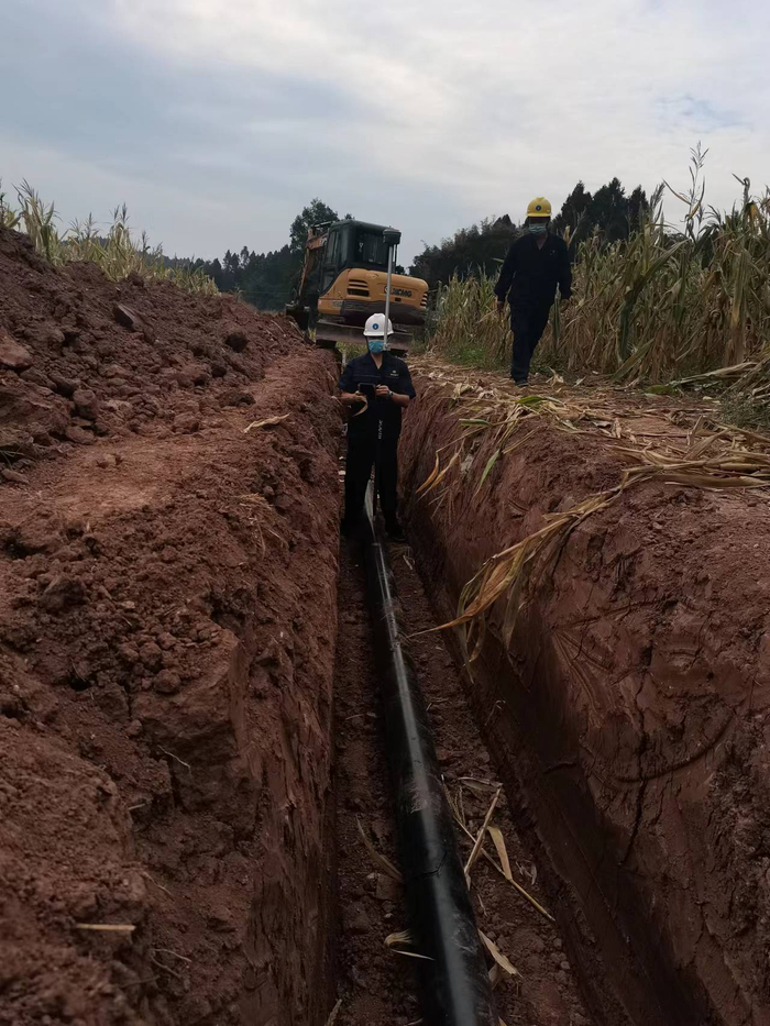 为能早日满足客户用气需求,公司在克服了村民阻挡、疫情等困难后,按既定计划于10月11日顺利完成了工程建设工作。绿色环保资源再利用项目次高压天然气管线气源接自公司已建简禾线,采用D159×6无缝钢管,材质L245N,设计压力为1.6MPa,管道长度1.8km。