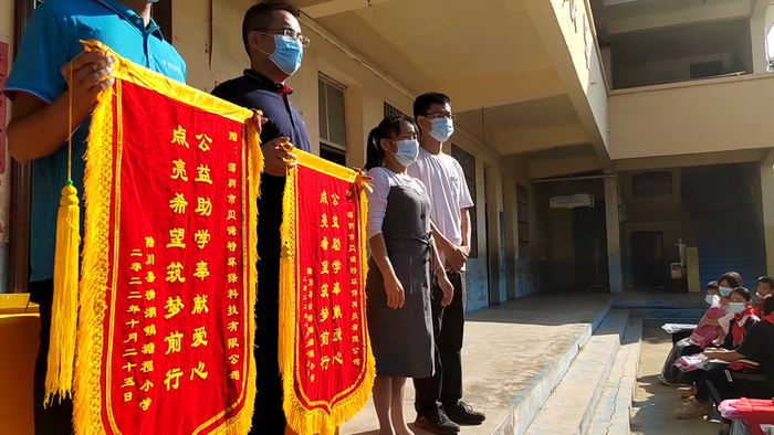 会后校方学生代表为贝诺特营销总监吴天生先生赠送鲜花。校方代表为贝诺特品牌授予“公益助学奉献爱心,点亮希望筑梦前行”的锦旗,以表达校方对于本次企业的爱心捐赠的高度认可。