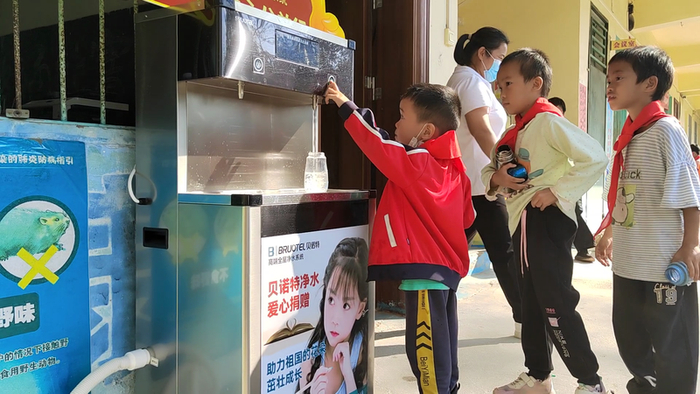 塘榄小学坡心教学点一直以来没有可靠的校园饮水点,此次贝诺特捐赠的校园饮水平台,彻底解决了该校100多学生的安全饮水问题。喝着校园饮水平台安全健康的饮用水,孩子们脸上都洋溢着幸福的笑容。