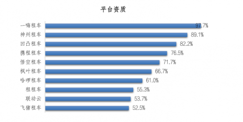 在NPS净推荐值中71.4%的受访者在推荐原因中选择“平台资质”。其中,一嗨租车的推荐者选择该原因的比例最高,占比为97.7%;其次是神州租车,为 89.1%;排名第三的是凹凸租车,为 82.2%。