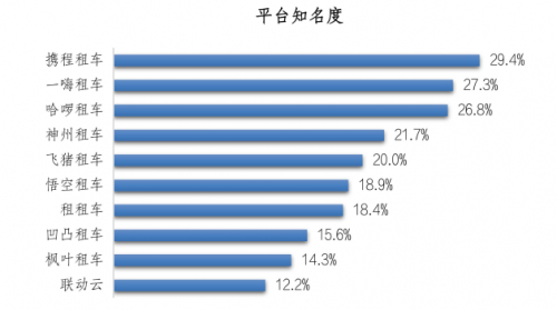 本次调研中,20.6%的受访者在推荐原因中选择租车平台 “平台知名度”。携程租车的推荐者选择该原因的比例最高, 为 29.4%;其次是一嗨租车,为 27.3%;然后是哈啰租车,为 26.8%。选择“平台知名度”作为推荐原因的受访者中,有 58.2% 的受访者认为租车平台“平台宣传推广力度大”,其次 47.3% 的受访者认为租车平台“平台行业内知名度高”