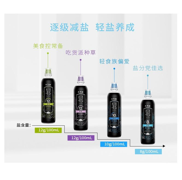 以六月鲜轻盐酱油为例,通过专利技术减盐,盐含量每百毫升最低仅为8g,配料表仅含四种原料,真0%添加,在国内首次实现了不添加防腐剂和味精、不稀释酱油原汁浓度,依然达成含盐量“新低”,盐分只有市面普通酱油的一半,从而实现减盐不减风味、减盐不减营养、减盐不减等级。