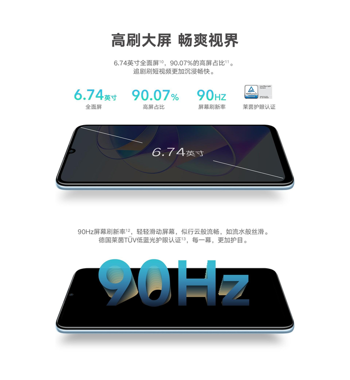 6.74英寸高刷护眼大屏+侧边指纹解锁 流畅视界 便捷交互