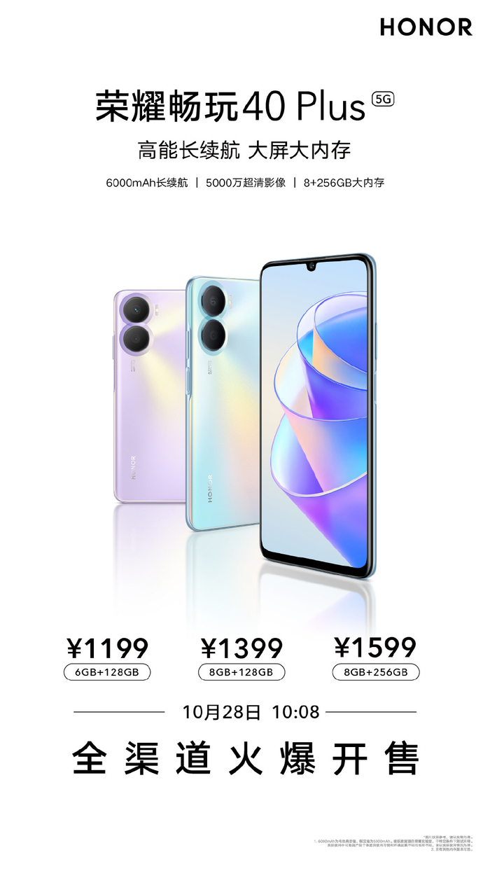 1199元起 大内存长续航手机荣耀畅玩40 Plus 今日开售