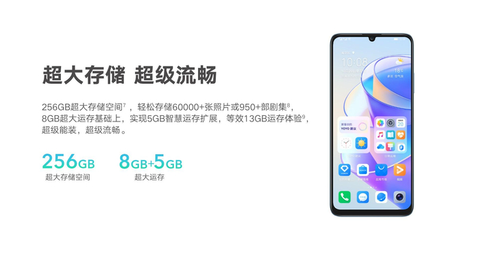 想要留存身边的美好瞬间,离不开手机大内存的支持。荣耀畅玩40 Plus最高支持8+256GB超大存储组合。可轻松收藏60000+张照片或950部精彩剧集。同时,荣耀畅玩40 Plus支持荣耀智慧运存扩展技术,在8GB超大运存基础上,实现5GB智慧运存扩展,等效13GB运存体验。不仅可以提升相机等App冷启动速度和后台保活率,还能有效减少“杀后台”情形的发生。